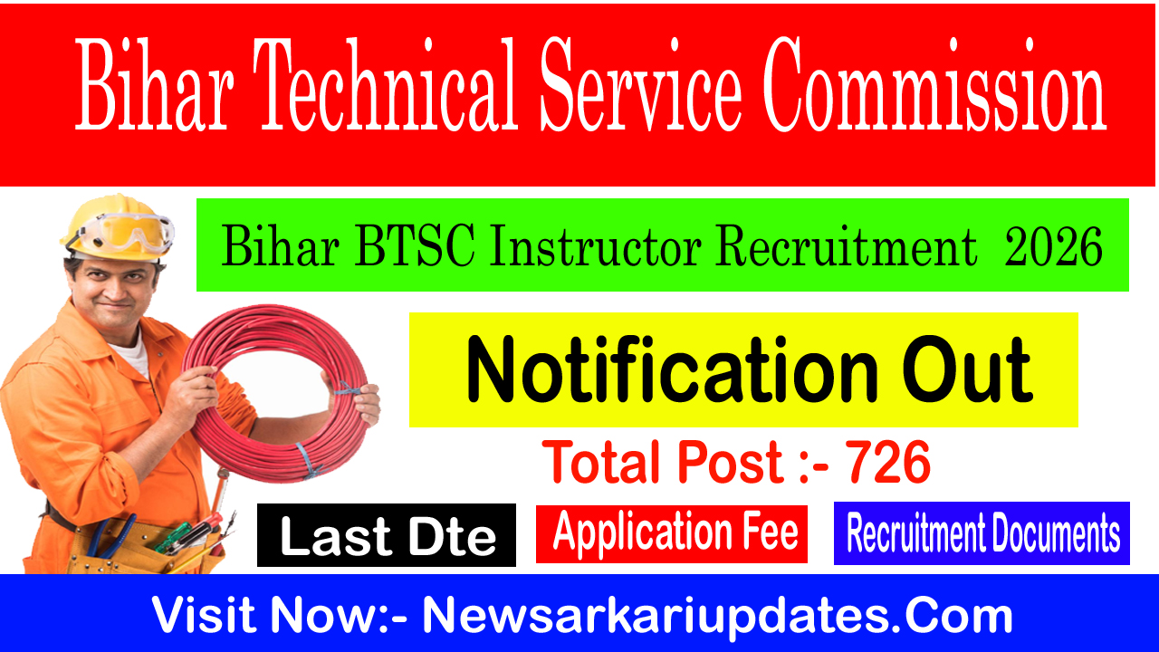 Bihar BTSC Instructor Recruitment 2026 Total Post 726 | ||||||